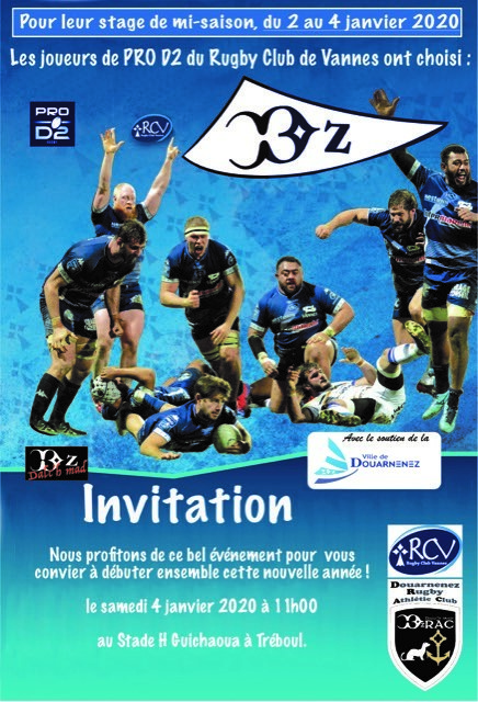 L'équipe phare du Rugby Club de Vannes profite de la trêve en Pro-D2 pour faire escale à Douarnenez le temps d'un stage de mi-saison (du 2 au 4 Janvier).