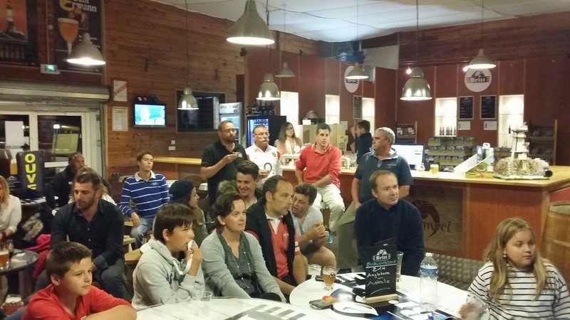 Samedi 3 octobre : Après s'être initiés l'après-midi, au jeu à toucher, sur le terrain du Vuzut à Concarneau, les amateurs de rugby étaient conviés à rejoindre la brasserie Britt à Trégunc pour 1 barbecue et assister sur grand écran au match Angleterre-Au