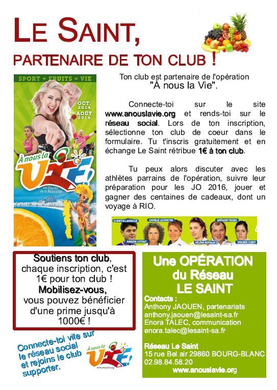 L'entreprise finistérienne, Le Saint, spécialisée dans la distribution des fruits et légumes frais, innove en matière de sponsoring sportif en soutenant à la fois le très haut niveau, représenté par 6 athlètes qui préparent les JO et le sport pour tous représenté par des clubs de toutes disciplines, associés au réseau.