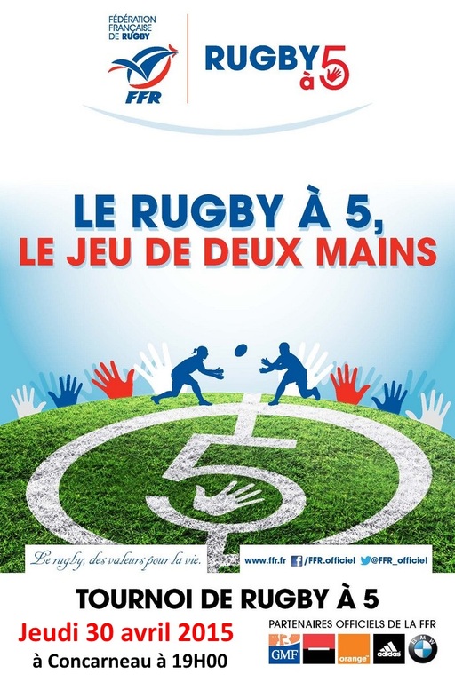 Le Comité de Rugby du Finistère organise le jeudi 30 avril 2015 un Tounoi de Rugby à 5 au Stade Henri Sérandour de CONCARNEAU. Ce tournoi débutera à 19H00.
