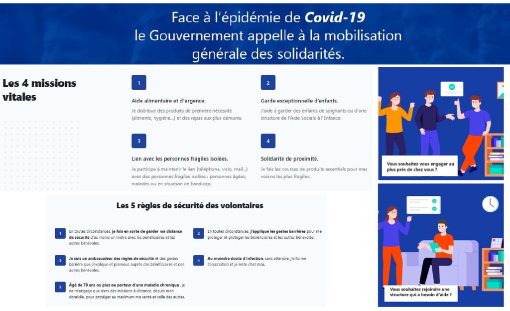 Une plateforme destinée à mettre en relation ces 4 besoins vitaux avec des bénévoles susceptibles de renforcer les actions contre l'actuelle pandémie a été lancée :